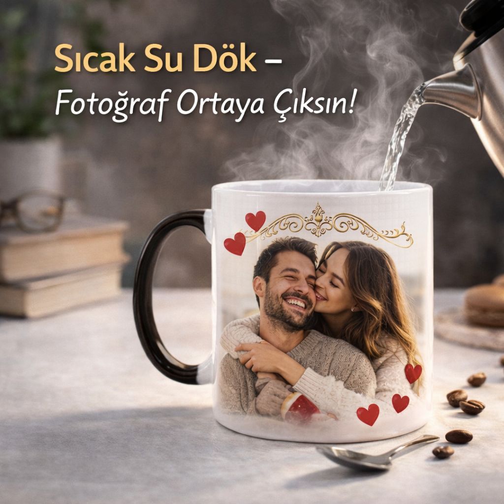 Özel kaplama teknolojisi sayesinde kupanın üzerindeki baskı ısı ile görünür hale gelir ve fotoğraf net şekilde ortaya çıkar. Hem günlük kullanım için hem de özel günlerde verilebilecek yaratıcı bir hediye olarak oldukça popülerdir.